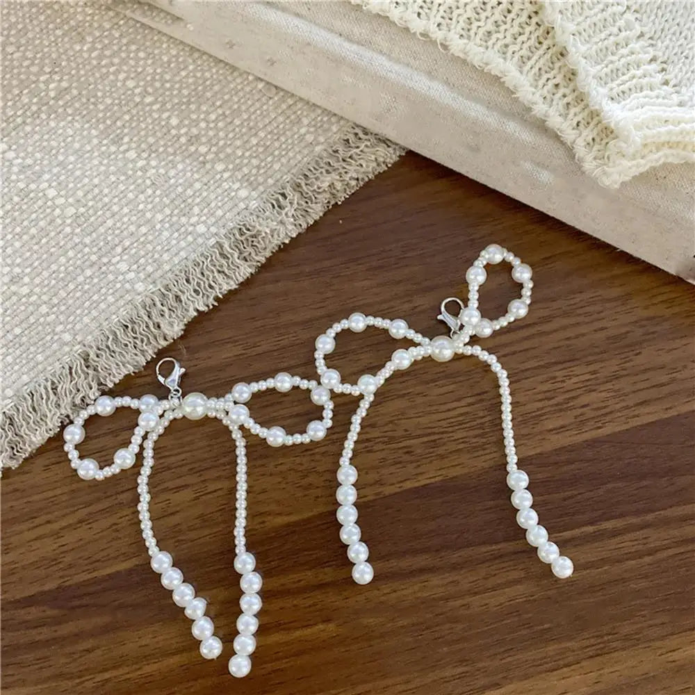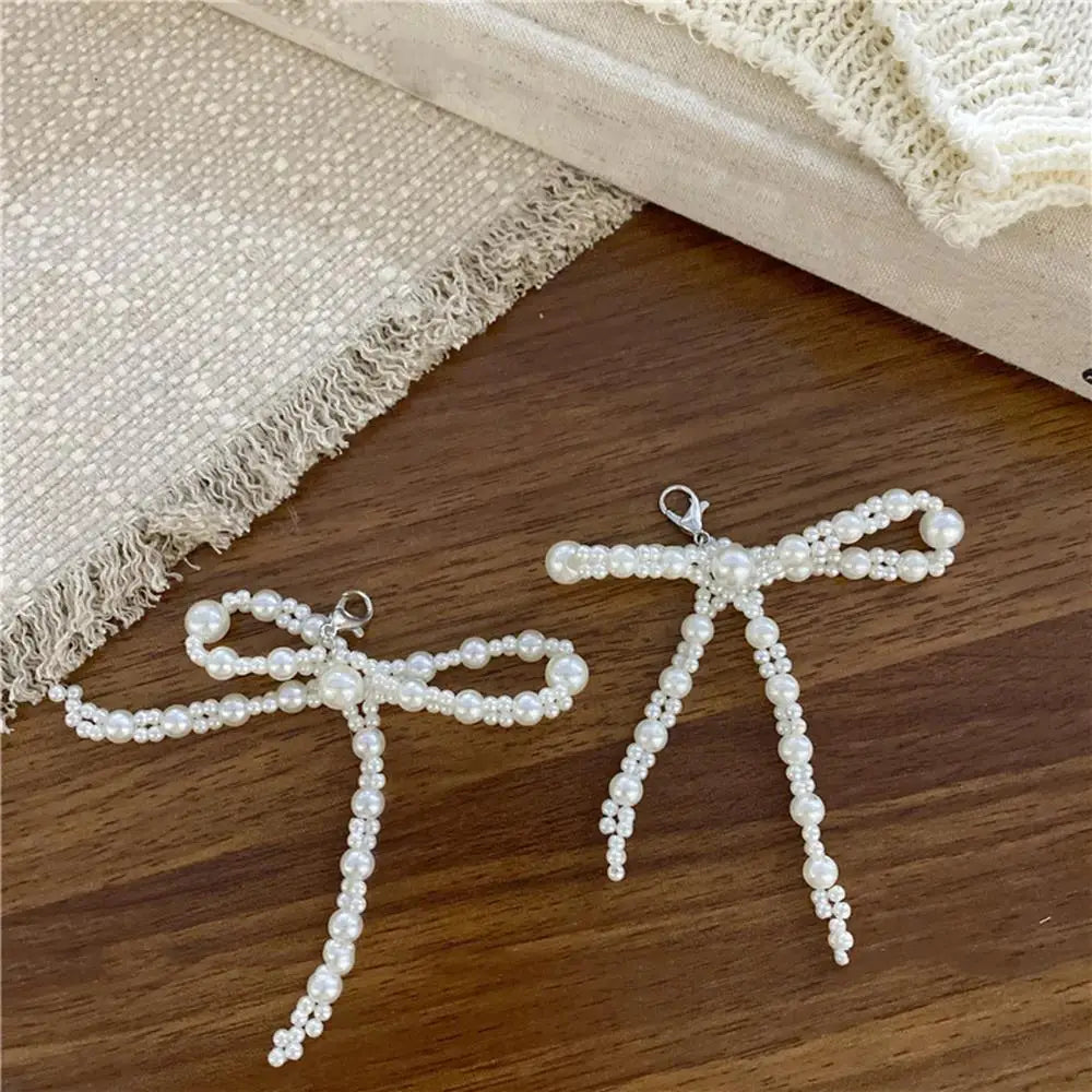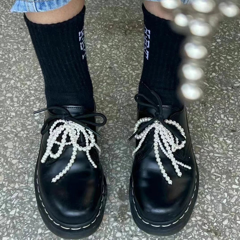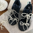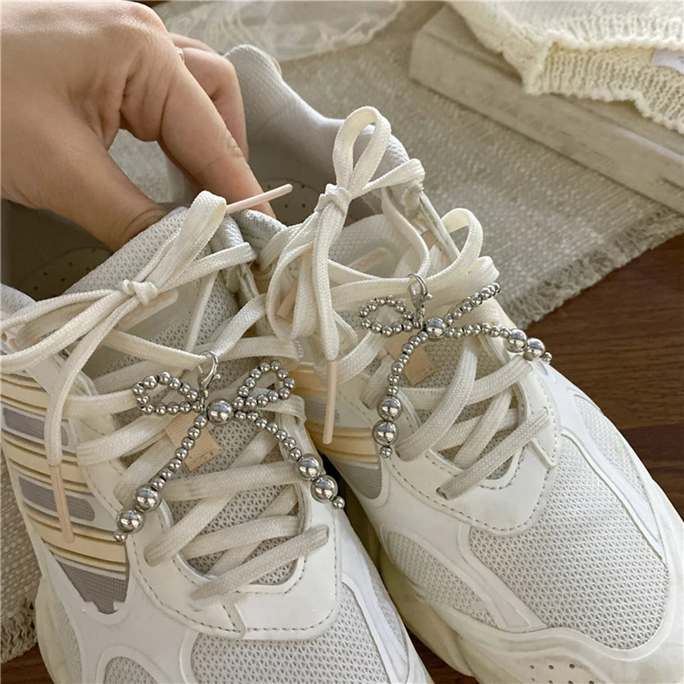 1 Pair Pearl Bow Shoe Buckle High Gloss Pearl Bow Ornament Bow Shoelace Chain Decoration Bead Bowknot Charm Shoe Buckle