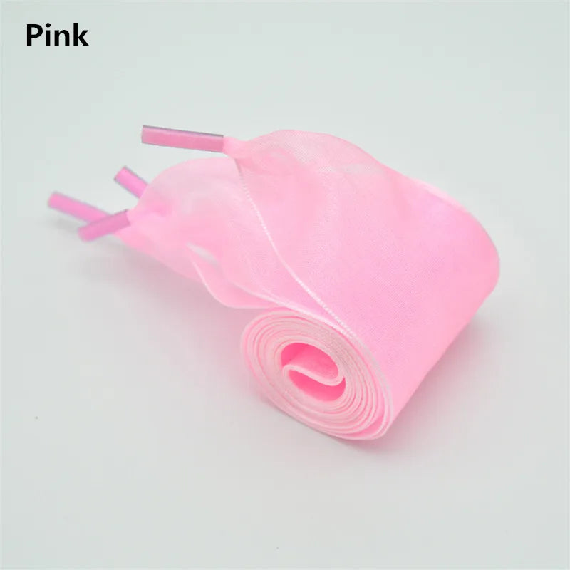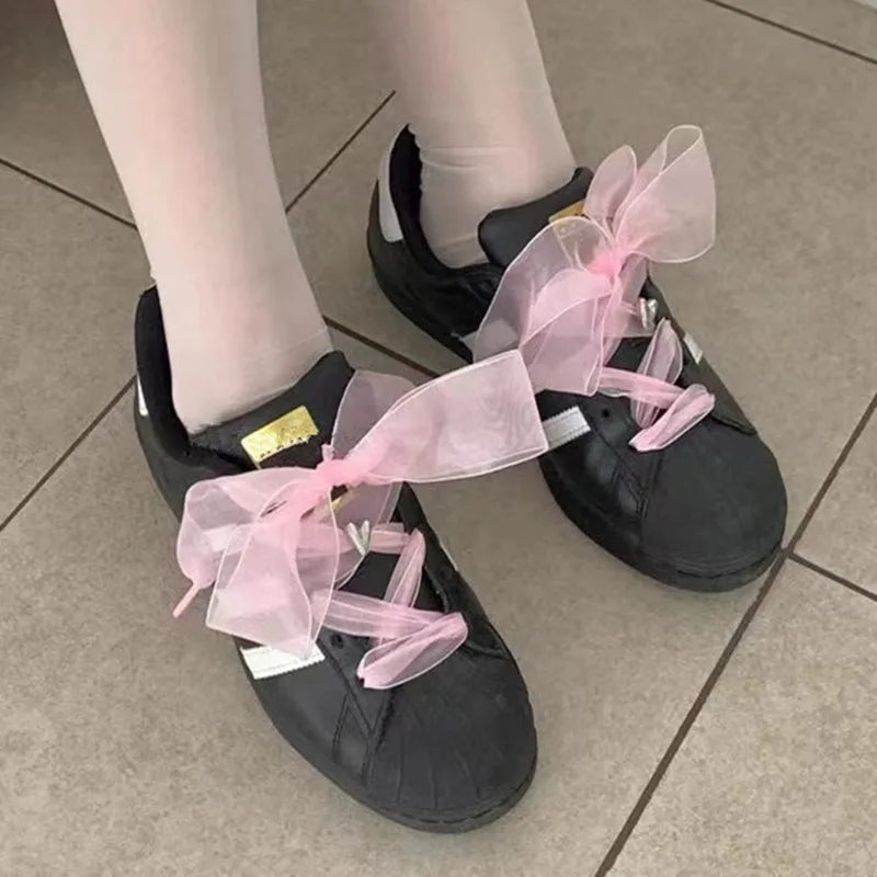 4cm Widened Transparent Chiffon Shoelaces – Flat Silk Bow Laces for Casual Shoes