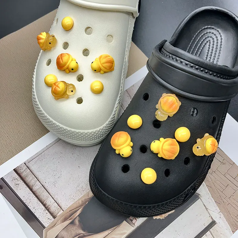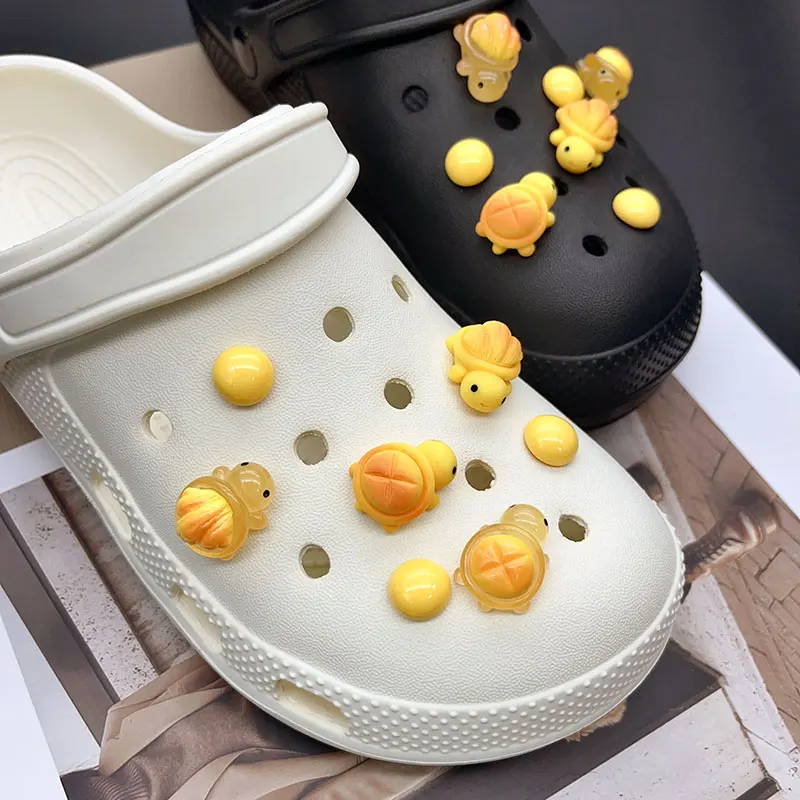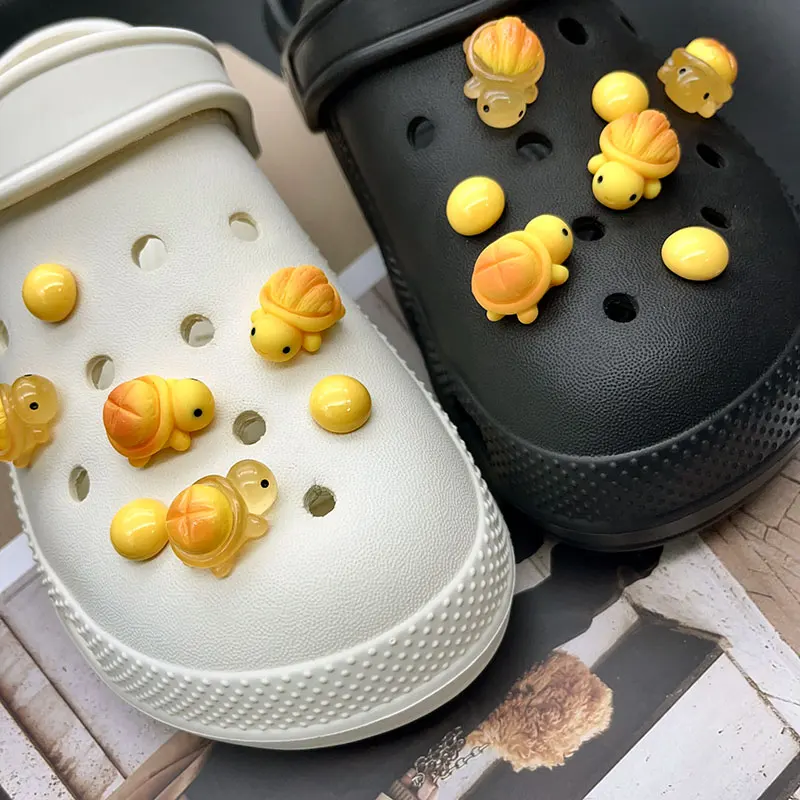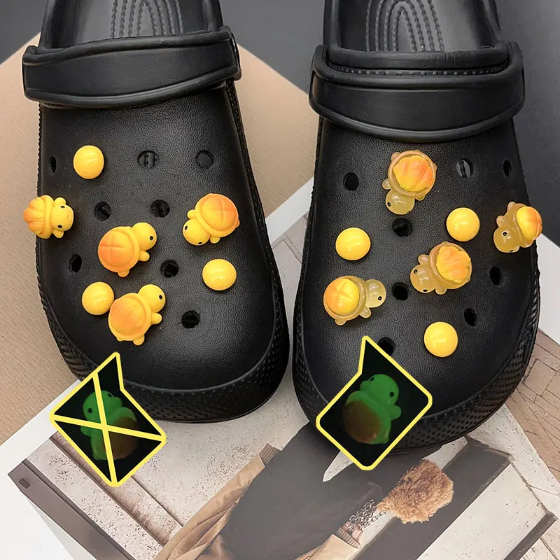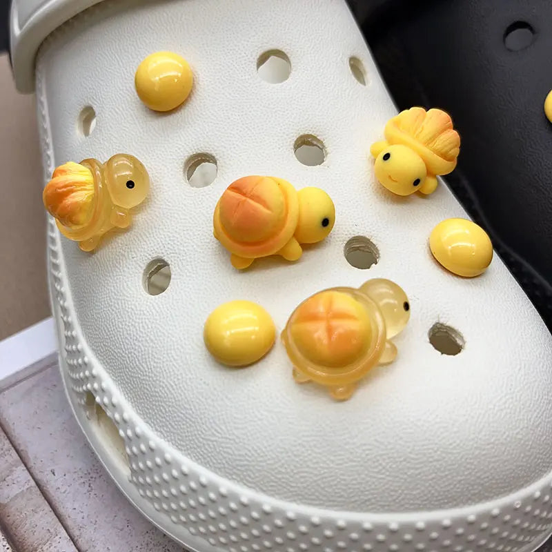 Cute Yellow Luminous Bread Turtle Shoe Charms for Crocs Decorations Clogs Pins Garden Sandals Slipper Accessories Girl Gift
