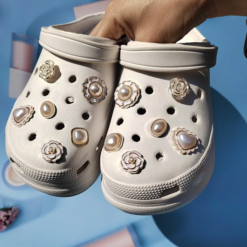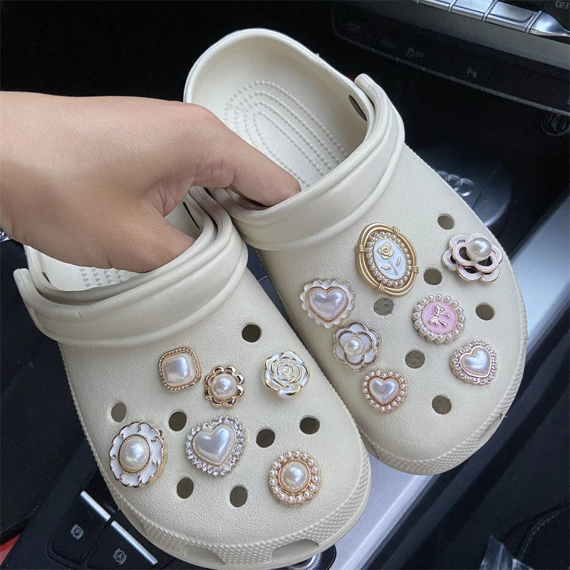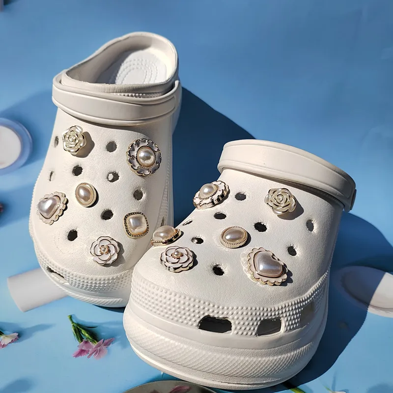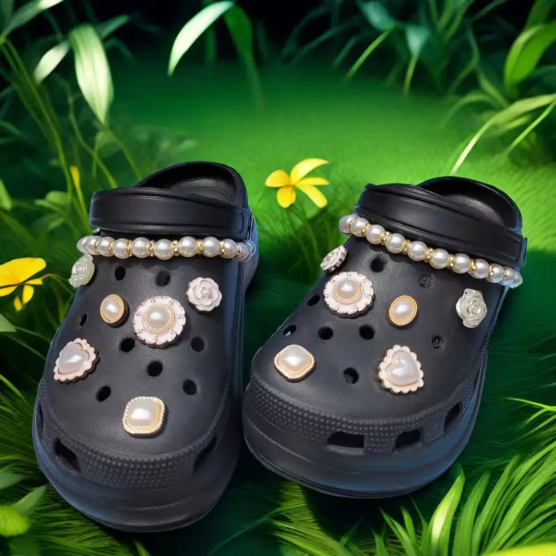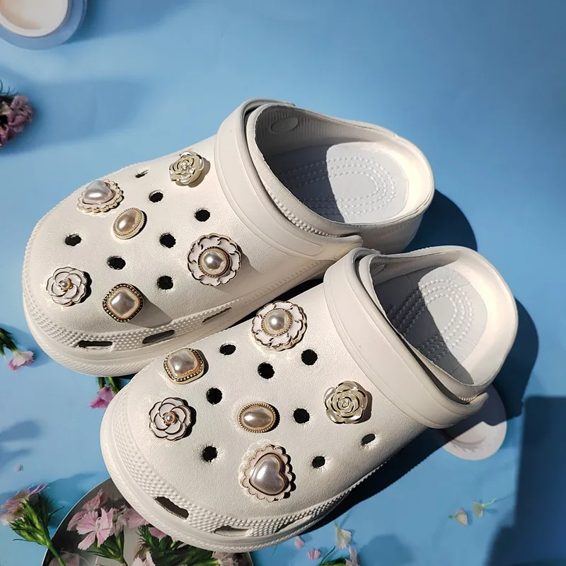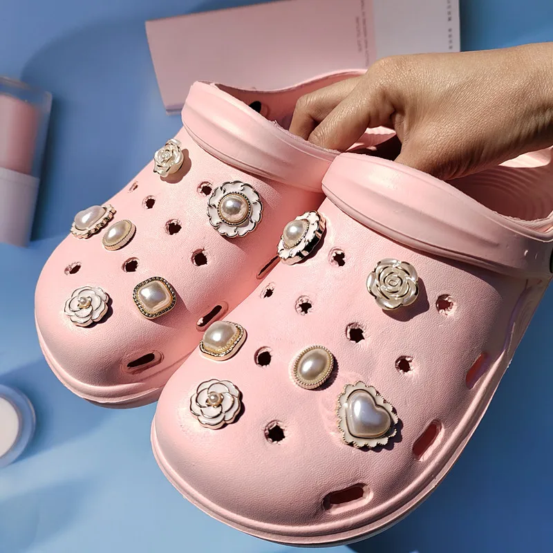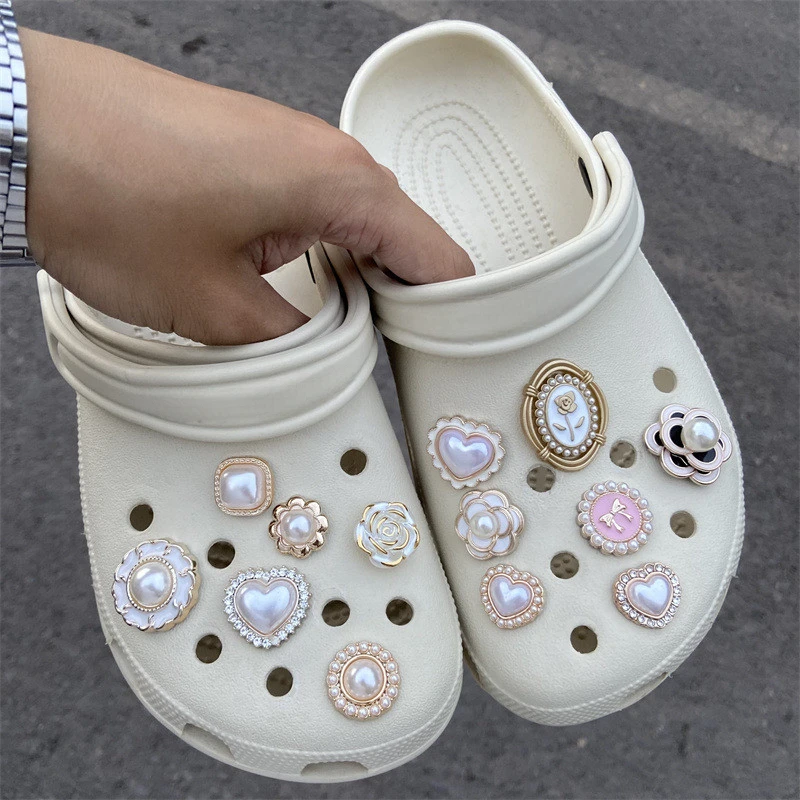 Hot Sale Sweet Cute Girly Hole shoe Charms Designer Elegant Vintage Pearl Chain Shoe Jewelry All-match Flower Shoe Accessories