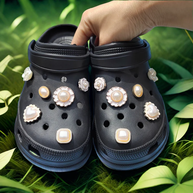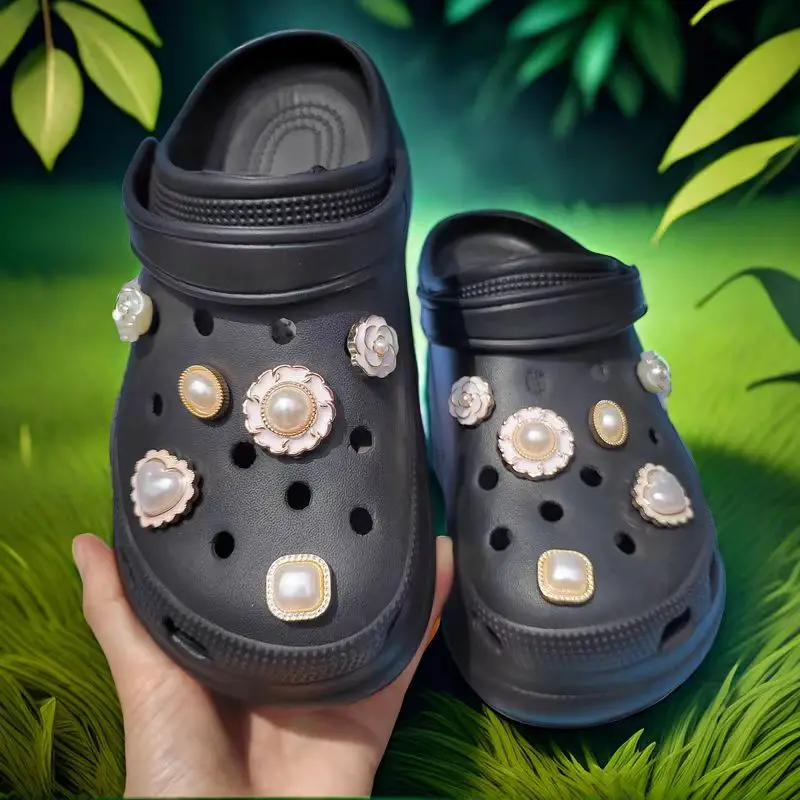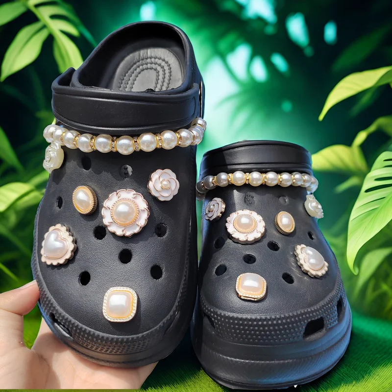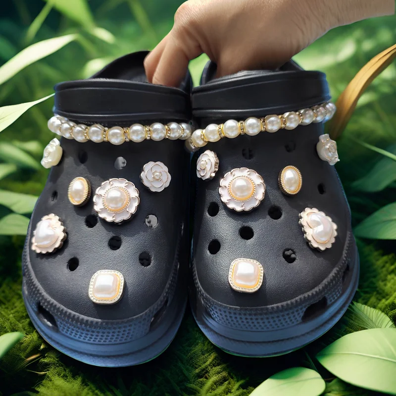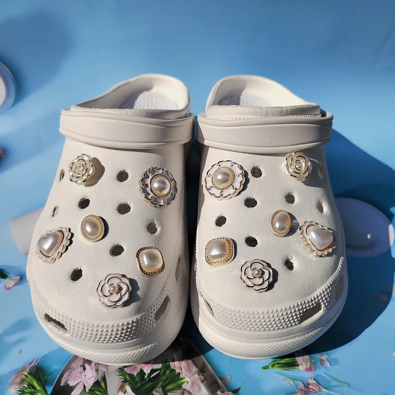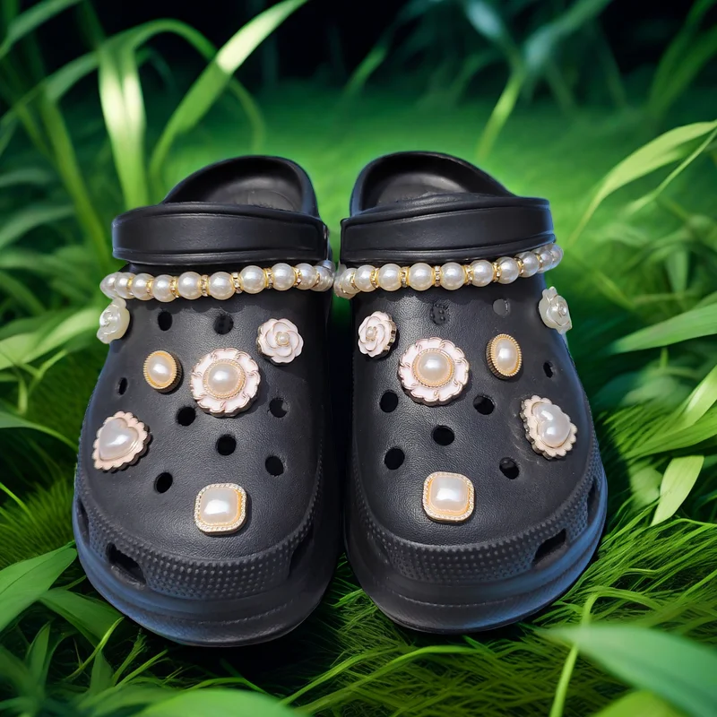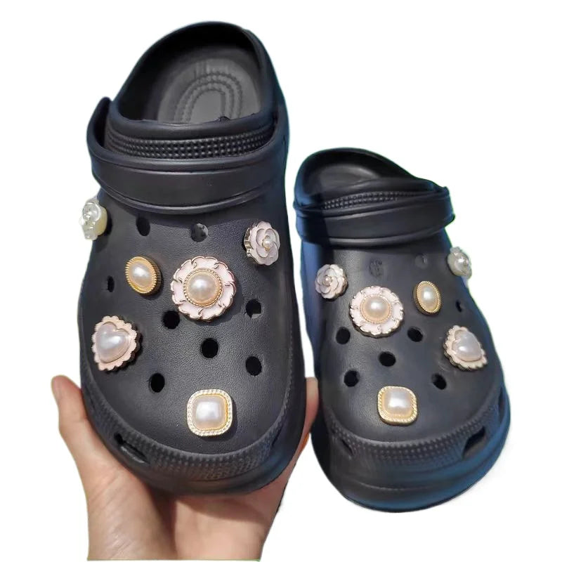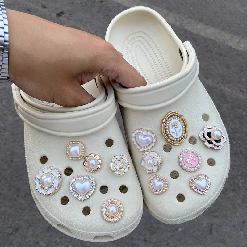 Hot Sale Sweet Cute Girly Hole shoe Charms Designer Elegant Vintage Pearl Chain Shoe Jewelry All-match Flower Shoe Accessories