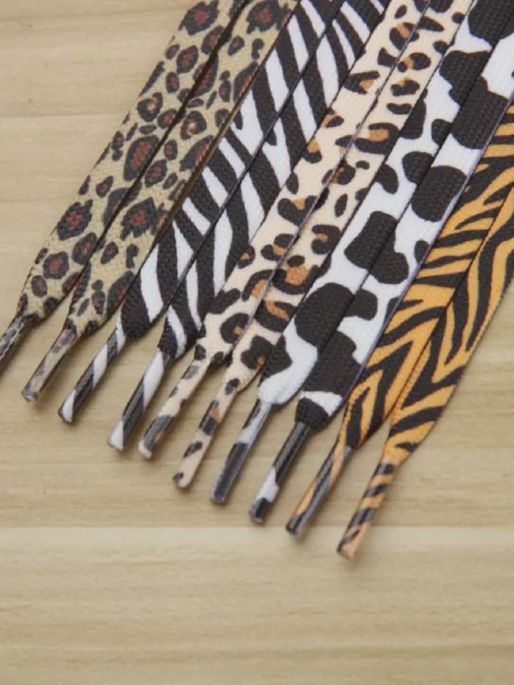 Refresh your sneakers with these Leopard Print Flat Shoelaces, featuring bold and colorful animal patterns inspired by leopard, zebra, tiger, and snake designs. Made for durability and style, these classic flat shoelaces add a trendy, eye-catching touch to sneakers, canvas shoes, and casual footwear. Perfect for mixing and matching to express your unique style.
