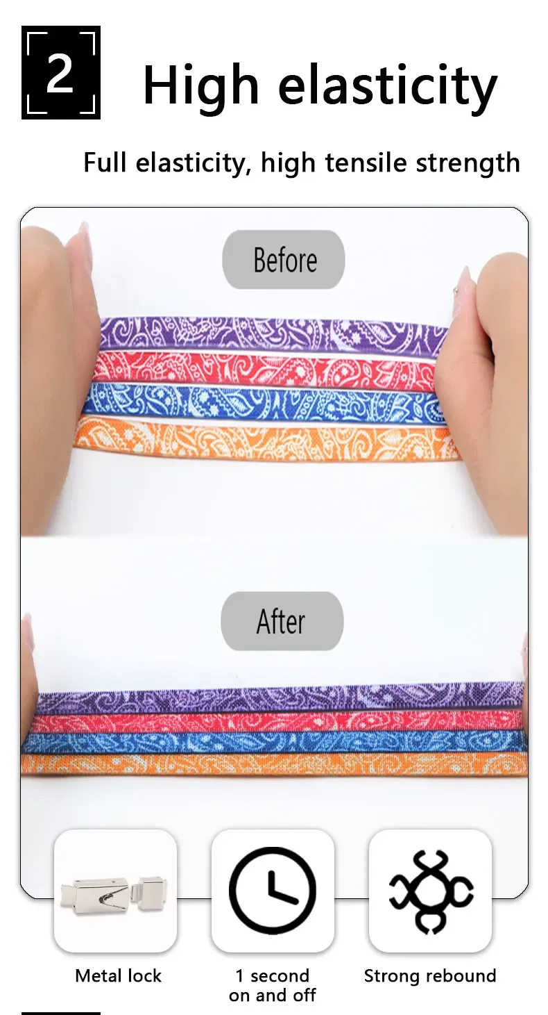 📦 1 pair of paisley pattern no-tie elastic shoelaces with locks