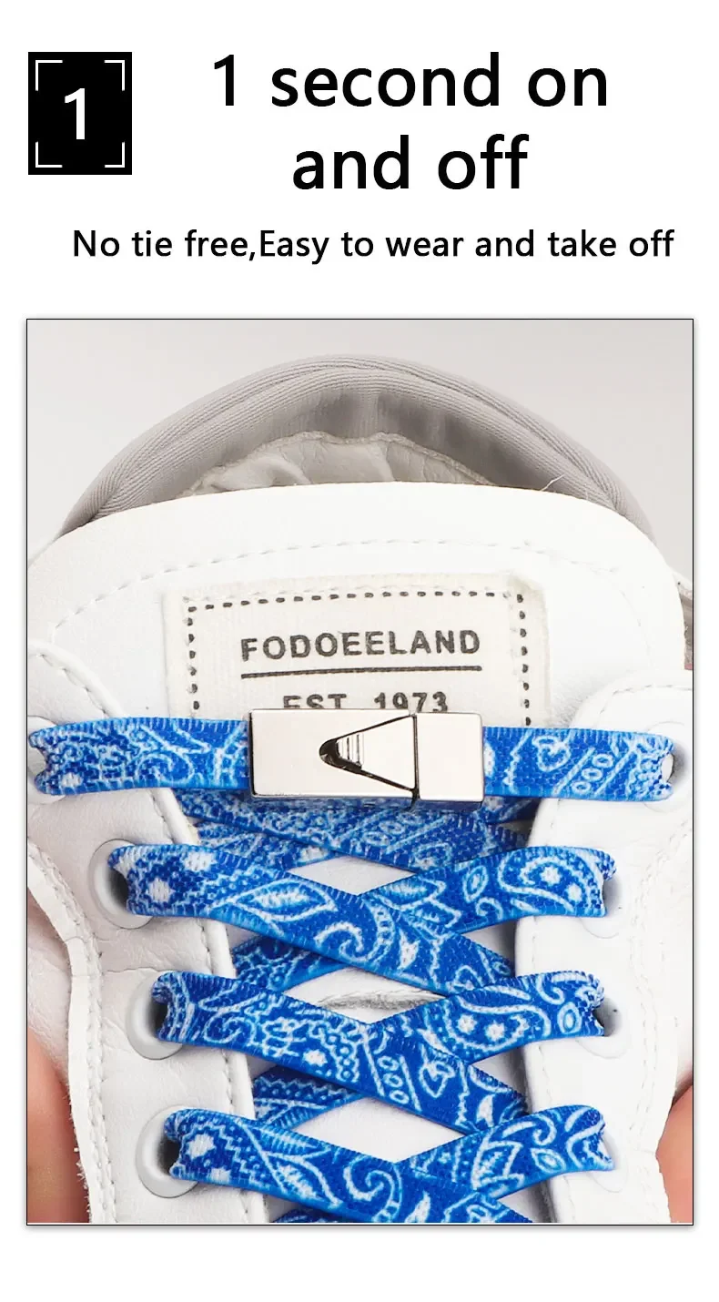 Paisley Pattern No Tie Shoe laces Elastic Laces Sneakers Outdoor Sports Shoelaces without ties Lock Shoelace Shoes Accessorie