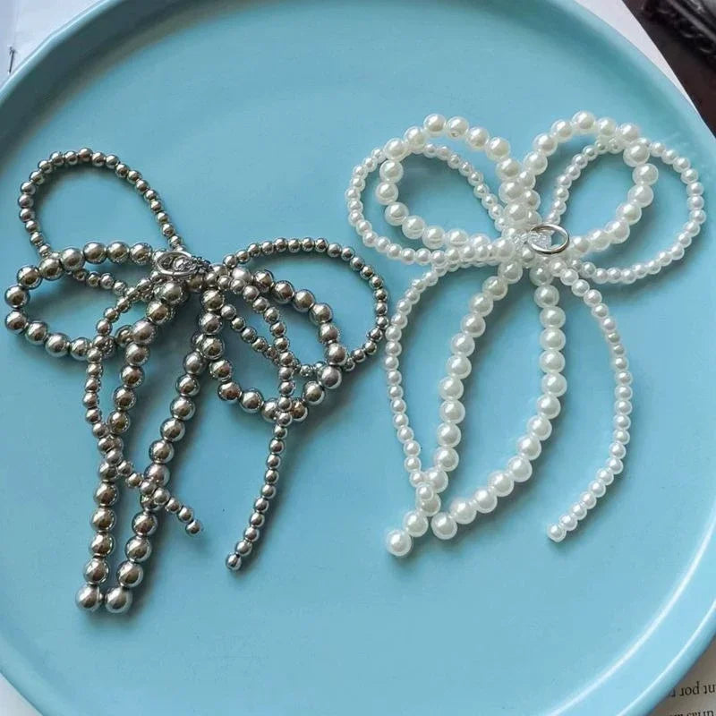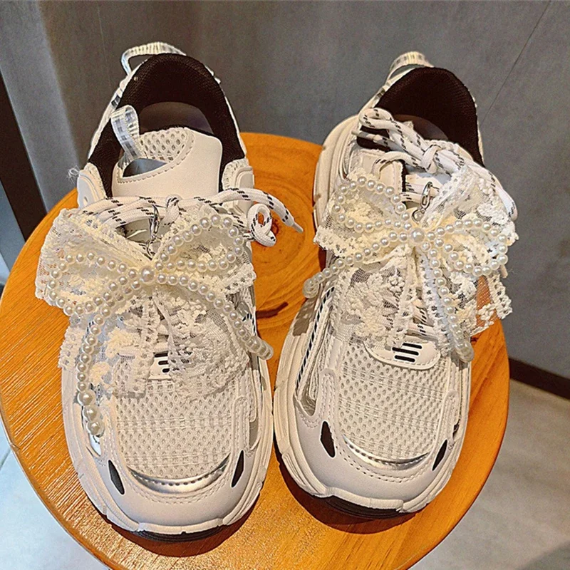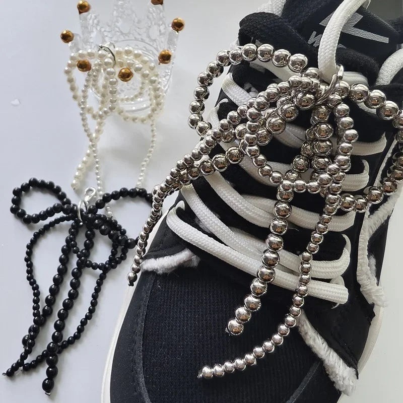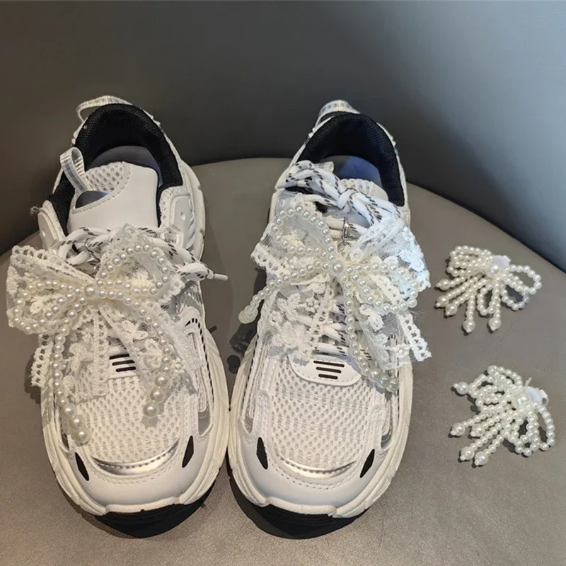 Shoelace Decorative Buckle Handmade Shoes Clip Lace Pearl Bead Bowknot Shoe Charms For Sneaker Bag Key Chain Pendant Accessories