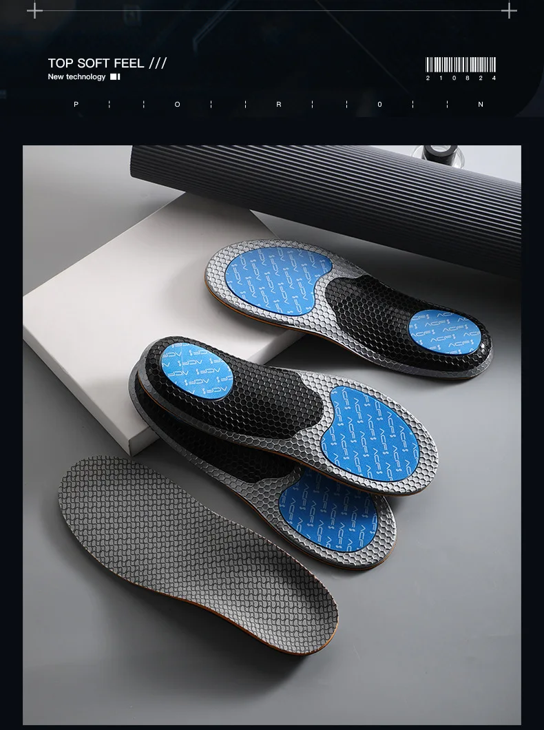 Designed for active performance and everyday comfort, these Sports Orthopedic Insoles feature advanced anti-buffering shock absorption with 90% ACF cartilage cushioning to reduce impact and protect your feet during movement. The breathable structure and corrective arch support help improve foot alignment, making them ideal for flat feet and long hours of sports or daily wear.